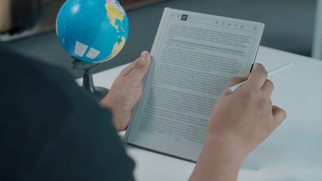 This creates a completely different kind of experience. You can stare at the screen for hours without eye fatigue, whether you’re reading a long PDF or working through lecture notes. The entire device is built around the idea of doing less, better.